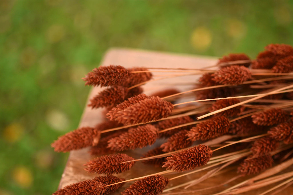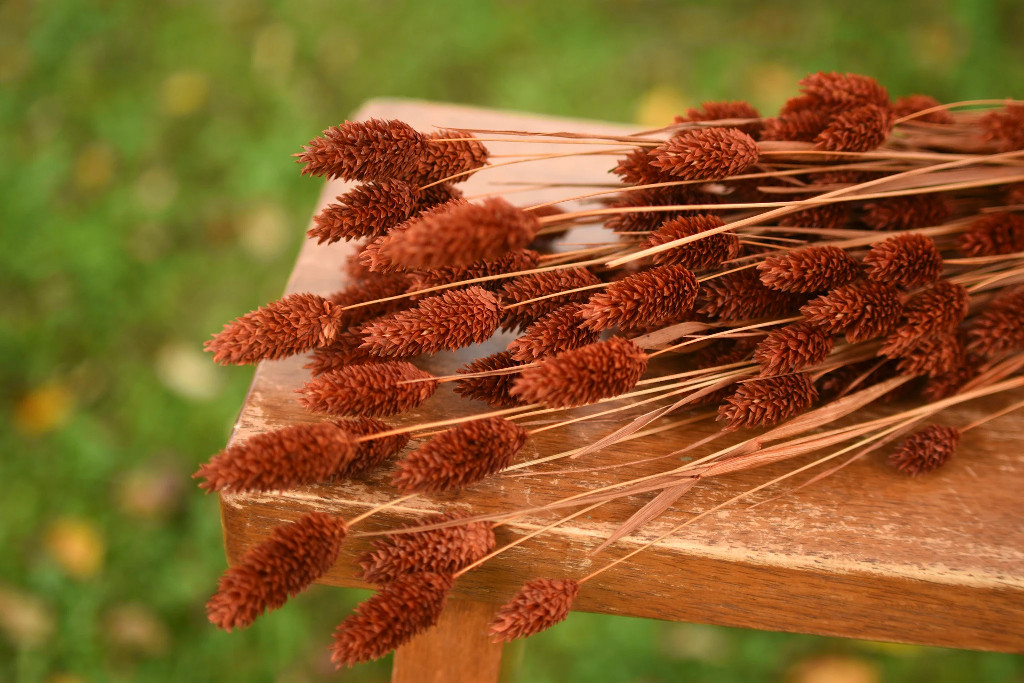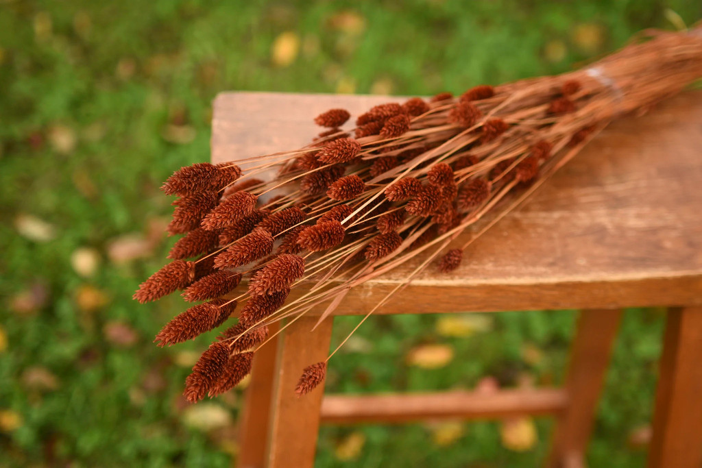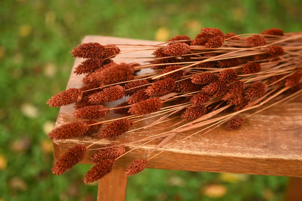 A lovely brown grass that’s beautiful in fall arrangements and wreaths! Comes in a 1,- 2-, or 4-ounce bunch; the pictures show 4 ounces. Each bunch is 24–26″ long.